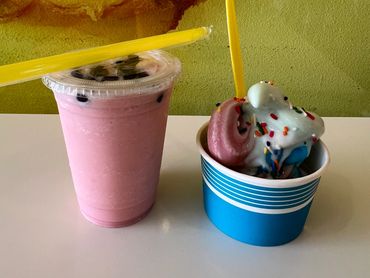 Dive into a swirl of delicious frozen yogurt with an array of toppings and sip on refreshing boba teas bursting with flavor.